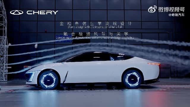 Die Form des Konzeptfahrzeuges ist von der stromlinienförmigen Körperform des Thunfischs inspiriert. KI-basierte Simulationstechniken optimieren die bionische Formgebung. Angelehnt an die besondere Faltung der Thunfisch-Rückenflosse, entwarfen Chery-Entwickler unter anderem Luftleitelemente, um den Luftwiderstandskoeffizienten zu verringern. Hinzu kommen verschiedene aktive Aeroelemente.