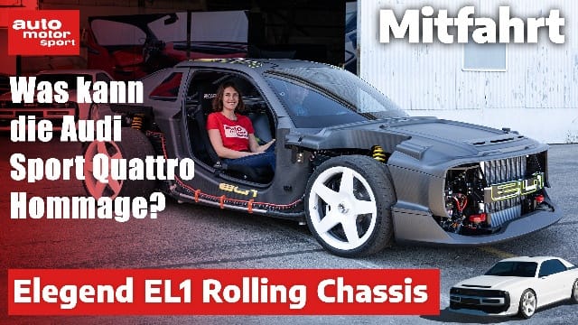 Optisch lehnt sich der EL1 mit seinen Proportionen und den mächtigen Quattro-Blister-Radhäusern an den Audi Sport Quattro S1 an. Das Design des EL1 zeigte E-Legend bereits im Herbst 2021. Zwei Jahre später ist die Technik erstmals in das eigens entwickelte Carbon-Monoque gezogen. Das Rolling Chassis trifft die Maße der ersten Designstudie fast auf den Millimeter genau. Das hätten viele damals für unmöglich gehalten, erzählt E-Legend-Gründer Designer Markus Holzinger stolz. Er hat den EL1 selbst gezeichnet. Mit dem Sport Quattro fühlt er sich besonders verbunden, da sein Vater an dessen Design mitgearbeitet hat – am jetzigen Firmensitz in Beilngries. Der erste fahrbare Prototyp steht hingegen in einem Hangar am Flugplatz Schleißheim unweit der IAA in München. Am Steuer: Rallye-Fahrer Manuel Egginger, verantwortlich für Strategie und Finanzen.