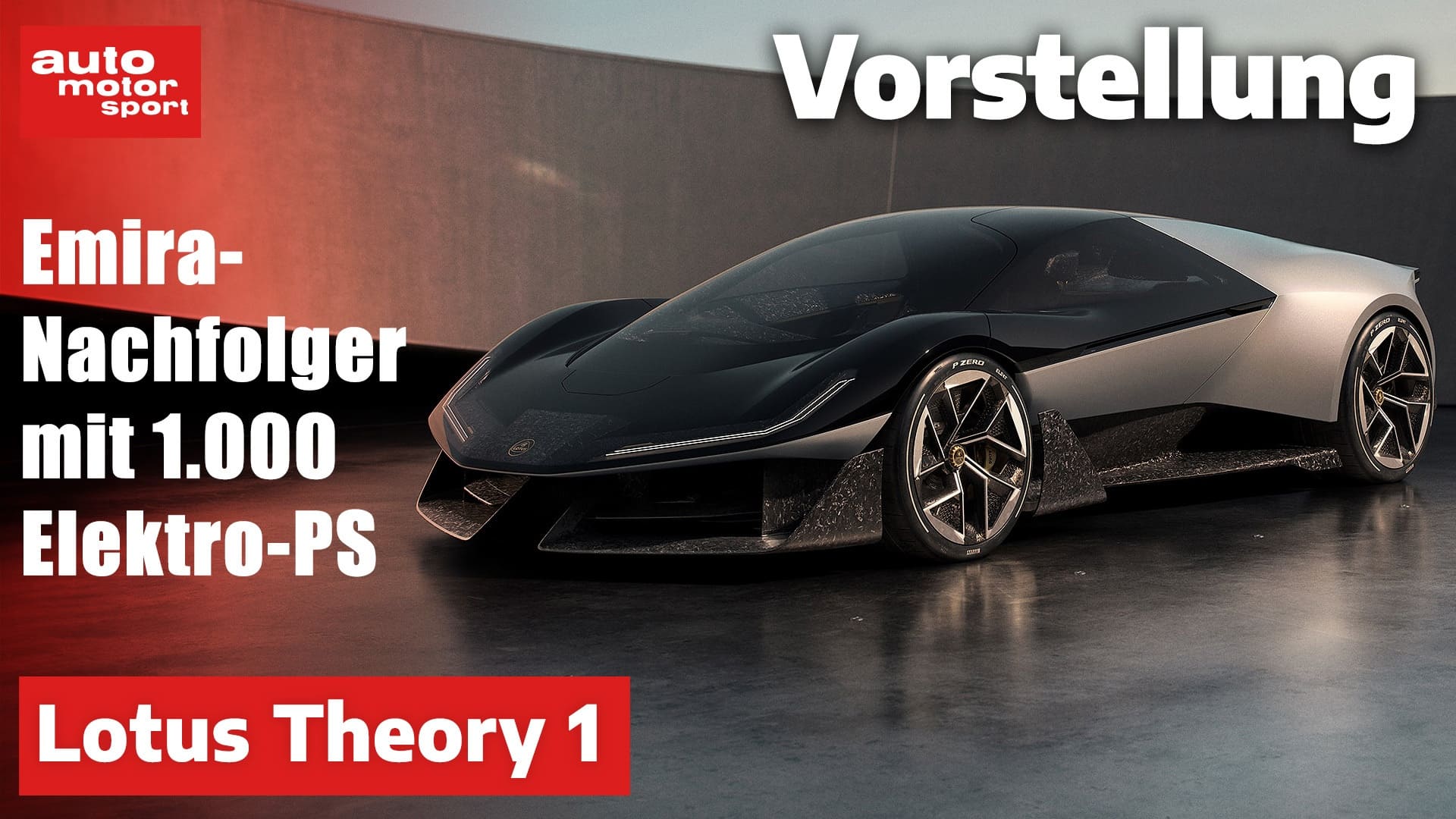 Lotus verrät nicht, wie viele Motoren den Theory 1 antreiben; der Allradantrieb deutet auf mindestens zwei hin. Sie leisten insgesamt 735 kW (1.000 PS) und beschleunigen den Elektro-Sportler in unter 2,5 Sekunden von Null auf Hundert sowie auf maximal 320 km/h. Die 70-Kilowattstunden-Batterie erlaubt eine Reichweite von 402 Kilometern. Motoren und Akku sitzen in einem Chassis, das aus recyceltem Carbon besteht. Das hilft, das Gewicht des 4,49 Meter langen, 2,00 Meter breiten und 1,14 Meter hohen Theory 1 unter der 1,6-Tonnen-Marke zu halten. Der Radstand beträgt 2,65 Meter.