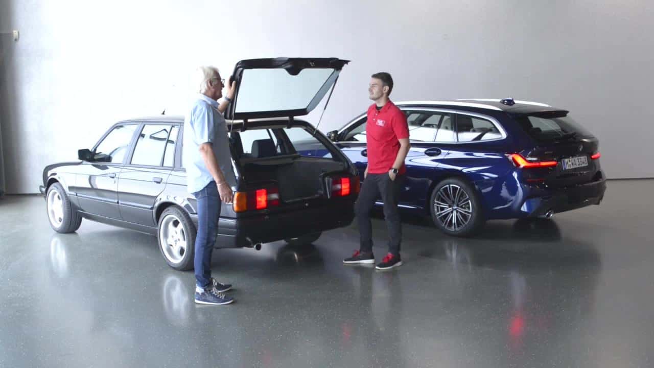 Allerdings spielt der alte E30/5 heute nur die Nebenrolle. Denn der Hauptakteur drängt sich bereits in den Vordergrund – der neue, nunmehr sechste 3er Touring. Doch bevor wir den 330d xDrive durch die Stadt, über Land und auf die Autobahn jagen, schauen wir mal, was sich in über 30 Jahren beim Touring verändert hat. Von der Einfachheit des Reisböck-E30-Umbaus ist beim Neuen nicht viel geblieben – das wird schon beim Öffnen der Heckklappe deutlich. Die schwingt langsam nach einem angedeuteten Fußkick unter den Stoßfänger elektrisch angetrieben auf. Während beim Ur-Touring nur eine bierkastenbreite Aussparung zwischen den fest stehenden Heckleuchten das Laden erleichtert, ist die Öffnung bei der aktuellen Baureihe (G21) breiter als je zuvor.