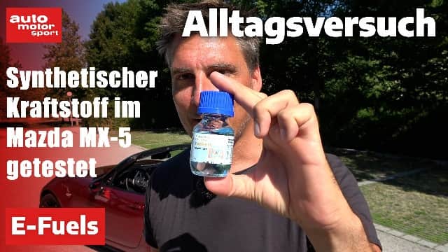 Hier bei auto motor und sport gehen wir, wie gewohnt, aufs Ganze. Zum Test von E-Fuels steht ein Mazda MX-5 bereit, dessen Benzintank bis auf wenige Kilometer Restreichweite leergefahren wurde.