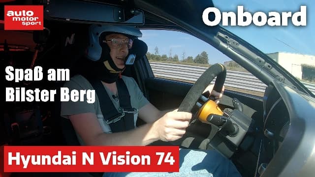 600 Kilometer soll der N Vision 74 mit vollem Akku und prall mit 4,2 kg Wasserstoff gefüllten Tanks schaffen. Heute sind es nur deren zehn. Vier Runden auf dem Bilster Berg Ostkurs stehen an. Schlecht für einen Reichweitentest, besser, um herauszufinden, ob die ganze Technik den Hyundai nur zu einem Technikexperiment oder einem echten Dynamiker macht. Die erste Runde gehört aber Jong-hyuk Kwon. Er ist für die Abstimmung des N Vision 74 verantwortlich und zeigt gleich mal, was das große Coupé kann. Leichte Seitenneigung, ordentliches Gripniveau, und – na klar – nur eine angetriebene Achse, die Kwon in der Mutkurve – wo auch sonst – erstmal schön aus der Reihe tanzen lässt. Zurück in die Box, Fahrerwechsel, weiter geht’s: Die Lenkung arbeitet angenehm präzise, mit dem aus anderen N-Modellen bekannten straffen Handmoment. Dabei wirkt das Chassis beim knackigen Einlenken nicht in den Asphalt verwurzelt wie andere Performance-Stromer und neigt sich etwas in die Federn. Die Brennstoffzelle, das aufwendige Kühlsystem und der nicht ganz flach in den Boden integrierte Akku heben den Schwerpunkt. Ganz zu schweigen davon, dass der N Vision 74 wahrlich kein Leichtgewicht ist. Eine genaue Gewichtsangabe wollen die anwesenden koreanischen Ingenieure nicht geben. "Etwa 200 kg schwerer als der RN22e" – eine andere Konzeptstudie von Hyundai N, über die ein weiterer Ingenieur sagt, dass er über zwei Tonnen wiege. Rund 2,3 Tonnen werden es wohl über den Daumen gepeilt sein. Und das ist vor allem in den engen Ecken spürbar. Trotz 275er-Vorderreifen muss man es ruhig angehen lassen am Kurveneingang, sauber fahren, und dann die Leistung am Ausgang nutzen. Dann belohnt das Coupé mit einem angenehm neutralen und präzisen Fahrverhalten.
