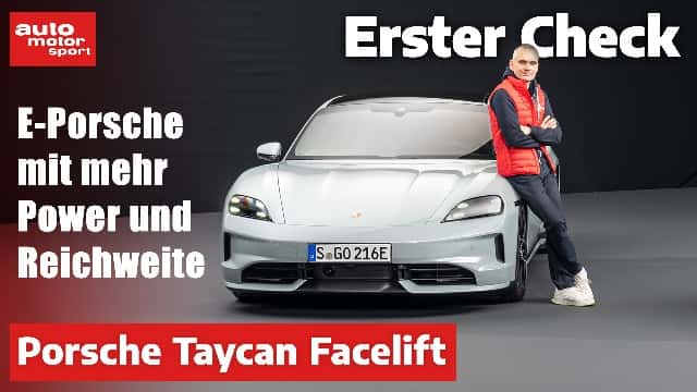 Ein paar Zahlen zum Vorkonditionieren? Zweikommavier, 15, 95, 103, 320, 952, 32.000. Die Auflösung: Sprintzeit Nullhundert, Extra-PS bei Push-to-pass, Akkugröße, maximale Ladeleistung, Spitzenleistung Turbo S beim Launch-Start, Anzahl der HD-Matrix-LED pro Scheinwerfer. So, vorgewärmt und bereit für den neuen Taycan , intern J1 II genannt? Also los! Nun, ganz neu ist er nicht, hier geht es nur um ein Facelift. Wenn auch ein gründliches: Porsche ging dem Taycan kräftig ans und vor allem unters Blech. Die Sportlimousine mit 800 Volttechniken kam 2019 als Gamechanger, wie Baureihenleiter Kevin Giek betont, Sport Turismo und Cross Turismo folgten. Das Facelift bekommen nun alle gleichzeitig. Was auch für den Umfang gilt, der sich von einer modifizierten Front- und Heckpartie mit serienmäßigem LED-Matrix, optionalem HD-Matrixlicht und beleuchtetem Heck-Schriftzug über serienmäßige Luftfederung plus optionalem Aktivfahrwerk, größerem Akku, schnellerem Laden bis hin zu mehr Power für alle Modelle erstreckt. Nicht zu vergessen die Modifikationen an Displays und Bedienung.