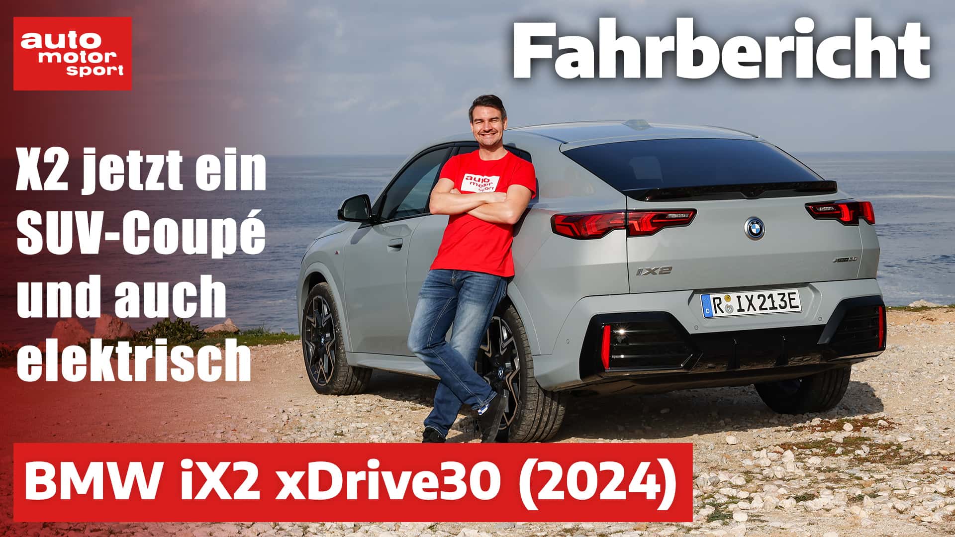 Klar, das hilft dem cw-Wert von 0,25 beim Elektro- iX2 (X2: 0,26), mit dem wir gleich durch Portugal stromern. Der E-SUV unterscheidet sich optisch lediglich durch die geschlossene Front von den Verbrennern, und natürlich fehlende Endrohre. Dafür umleuchten die Bayern beim Topmodell X2 M35i die Riesenschnauze serienmäßig. Bei Tageslicht ist das SUV-Coupé dagegen kaum zu übersehen. Gegen die bescheidene Rundumsicht installiert BMW eine Rückfahrkamera ab Werk in Regensburg.