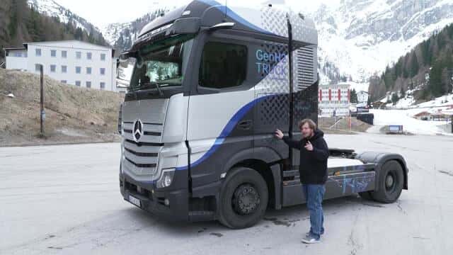 Denn ganz ohne Wasserstoff gehe es nicht. "Gerade bei hohen Belastungen sei die Wasserstofftechnik den Batterie-Lkw überlegen", meint Felix Kaufmann. Er arbeitet mit seinen rund 30 Kollegen innerhalb der Vorentwicklung bei Daimler Trucks unter anderem an der Steuergerätesoftware, mit der die Brennstoffzellen-Lkw schon in der zweiten Hälfte des Jahrzehnts in Serie gehen sollen. Heute sitzt er in einem der beiden Prototypen mit dem Namen GenH2 und fährt mit uns auf der Brennerautobahn – mit einem fast voll beladenen, rund 39,5 Tonnen schweren Sattelzug.