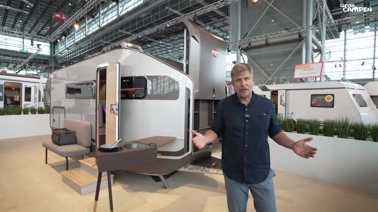 Kompakt reisen, vor Ort entfalten – das ist das Motto der auf dem Caravan Salon vorgestellten Talis Studie von Bürstner. Der kleine Wohnwagen sorgt für ganz schön Aufsehen. Bürstner trifft mit der Studie ins Schwarze. Klar, E-Autos spielen als Zugwagen eine immer größere Rolle und alle Reisenden sind daran interessiert, den Spritverbrauch so niedrig wie möglich zu halten. Da spielt das Gewicht eines Wohnwagens vor allem aber seine Aerodynamik eine immense Rolle.
