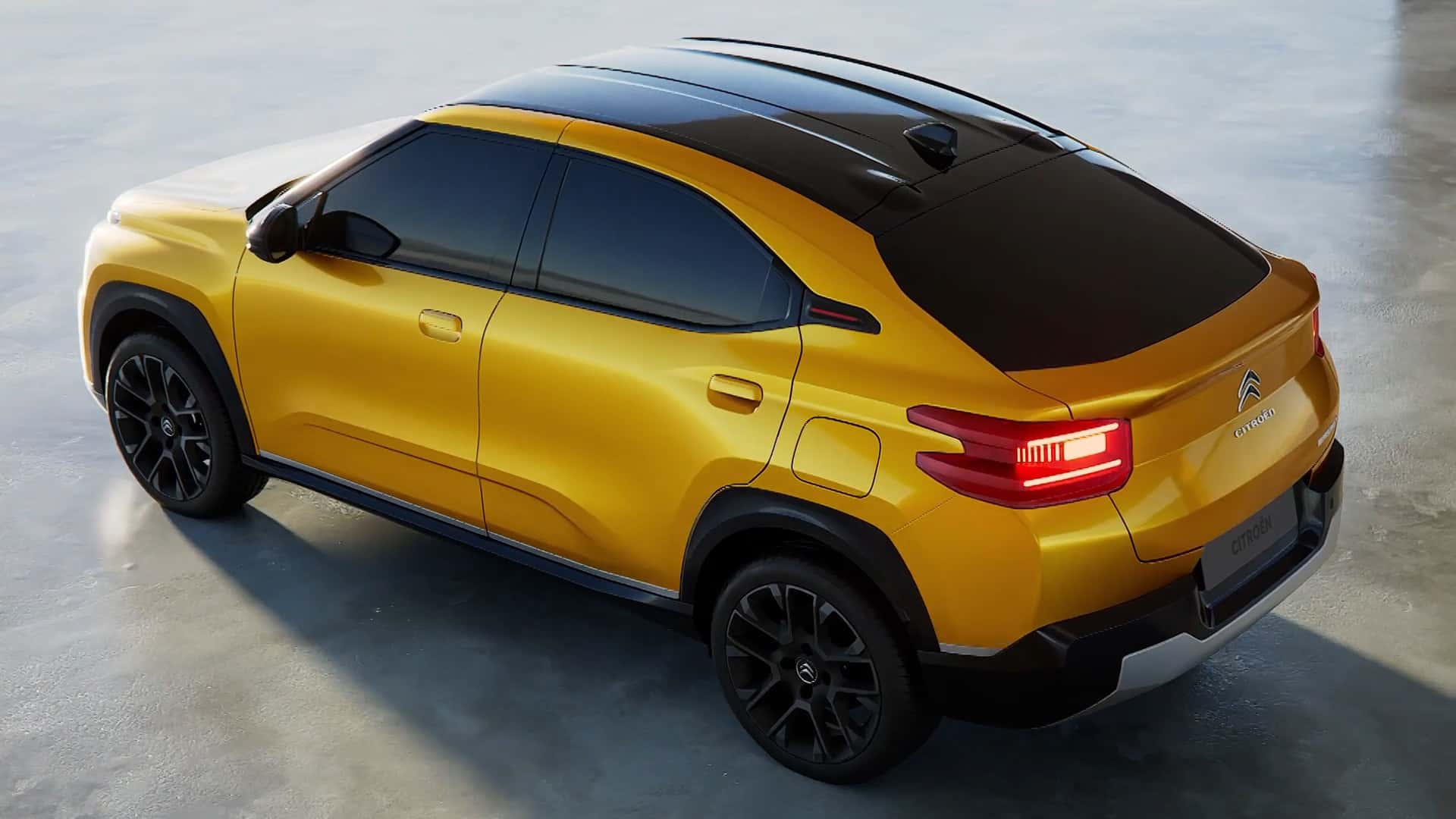 Der Basalt verwendet zwar die Front des brasilianischen C3, ist aber schicker herausgeputzt als der preiswerte Kompakt-SUV. Eine andere Schürze mit vorgezogener unterer Spoilerkante, Metall-Elemente und mehr lackierte Flächen lassen ihn wertvoller wirken. Das Heck mit der Coupé-artig herabgezogenen Heckscheibe wird von einer kurzen Kofferraumklappe samt integriertem Spoiler-Knick betont, die Rückleuchten greifen weit um die Karosserie herum. Der Citroën Basalt wirkt auf den Bildern sehr hochbeinig und bringt entsprechend viel Bodenfreiheit mit, um auch Rumpelpisten auf dem Land schadlos zu überstehen.