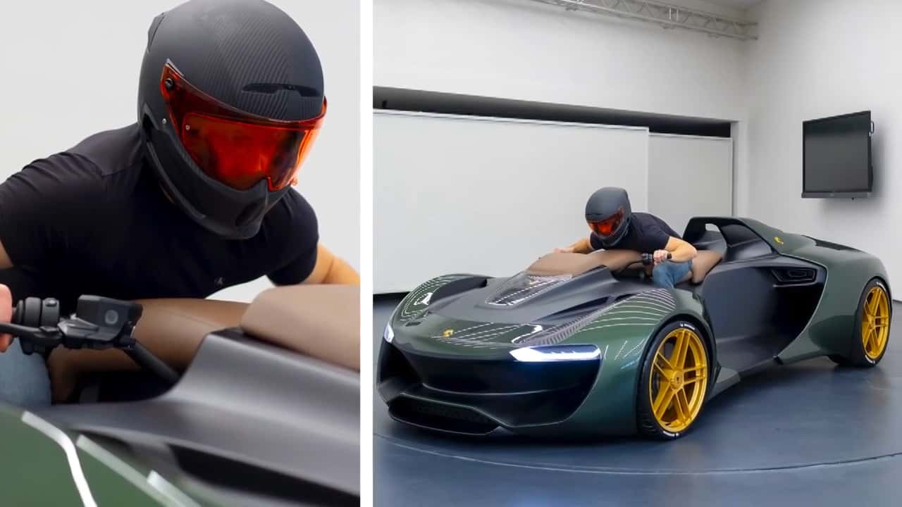 Beim Chassis handelt es sich um ein titanverstärktes Carbon-Monocoque, das vorn und hinten Hilfsrahmen aus Titan und Chrom-Molybdän aufweist. Klingt mehr nach einer typischen Supersportwagen-Bauweise als nach einem Quad, aber die im Zentrum fehlende Karosserie und die Anordnung der auf die jeweilige Kundschaft maßgeschneiderten sowie elektrisch verstellbaren Ledersitze (zwei hintereinander) spricht eher für Letzteres. Als Cockpit dient eine kleine Instrumententafel, die aus zwei leicht nach innen gedrehten Touchscreens besteht. Apple-Smartphones lassen sich über Carplay in das Infotainment-System einbinden. Alle Bedienelemente gruppieren sich rund um die beiden Griffe, deren Funktionsweise jenen eines klassischen Motorrads oder Quads entspricht.