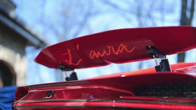 Der Chiron Super Sport für die Dame sollte auf eine ähnliche Weise mit Licht und Farben spielen. In diesem Fall kombinierten die Designer das leuchtend rote Rosso Efesto mit strahlendem orangefarbenem Arancia Mira. Das handbemalte Meisterwerk geht als "L’aura" (Die Aura) in die Bugatti-Geschichte ein.
