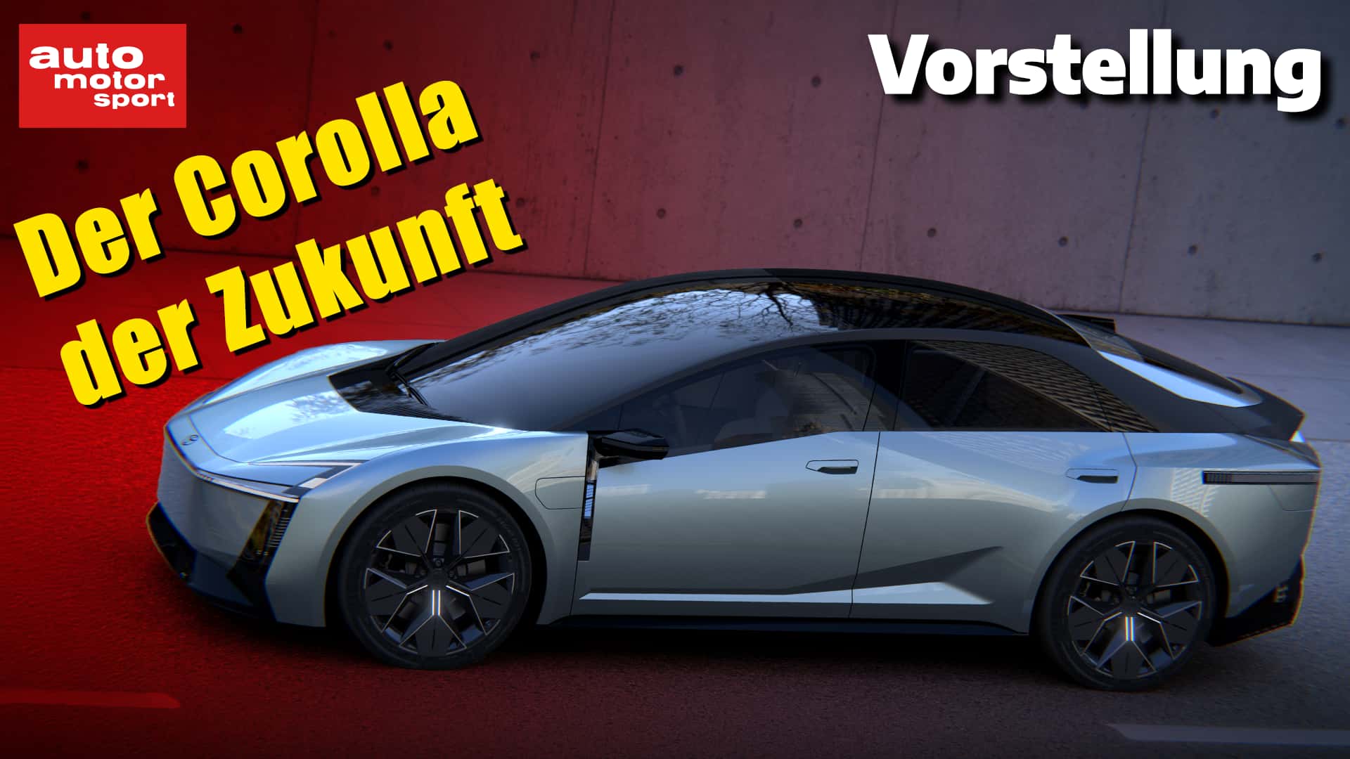 Zu sehen gibt es eine extrem futuristisch gezeichnete Stufenheck-Limousine, wobei die Stufe im Heck eher Richtung Fließheck tendiert. Die kantige Front greift Design-Elemente des Prius, aber auch der elektrischen bZ-Modelle auf. Markant ist die Lichtsignatur mit den L-förmigen Leuchten oben sowie dem durchgehenden Lichtband über die gesamte Breite. Das hoch bauende Heck verjüngt sich im Bereich der Heckscheibe stark und läuft in einen knackigen Spoiler aus. Darunter greift ein LED-Lichtband, das die Rückleuchten im Pixel-Design verbindet, die vordere Lichtsignatur wieder auf. Auf der Heckklappe prangt ein großer Corolla-Schriftzug. Der untere Teil der Heckschürze tritt im dezenten Diffusor-Look auf.