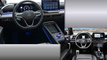 Der Innenraum des alten T-Roc (rechts) wurde nach dem Facelift zwar deutlich aufgehübscht, besaß aber dennoch viel Hartplastik. In Sachen Haptik und Materialauswahl das neue Cockpit ein großer Sprung.
