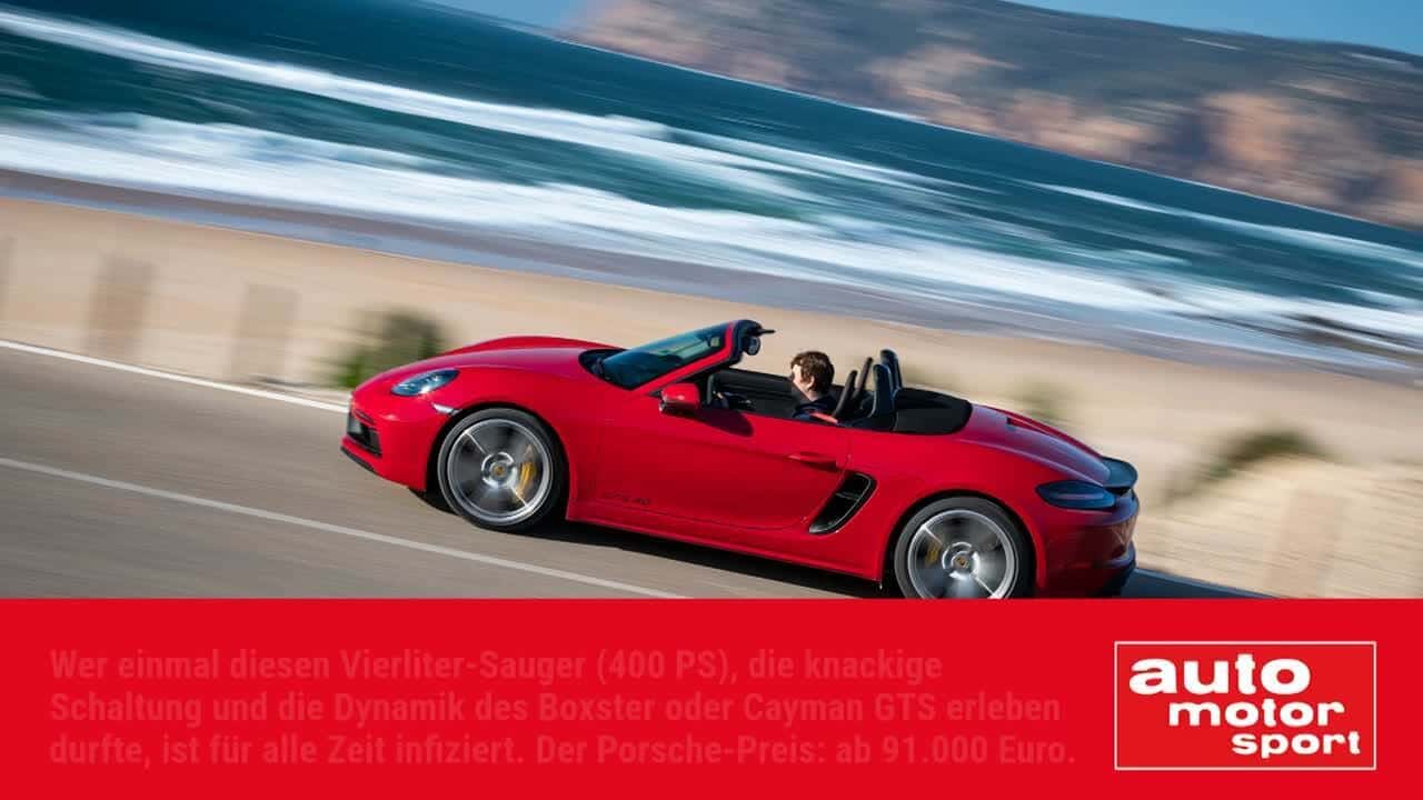 Wer einmal diesen Vierliter-Sauger, das knackig kurze Sechsganggetriebe und die Mittelmotorauslegung des 718 GTS bedienen durfte, ist für alle Zeit infiziert. Denn sowohl der offene Boxster als auch der geschlossene Cayman verkörpern den perfekten Sportwagen. Auch wenn beide marktstrategisch im Schatten der 911er stehen – ihre Einfachheit und Leichtigkeit geht der dickeren 992er-Baureihe längst ab.