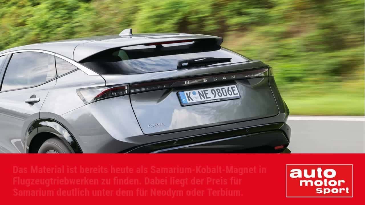 Kein Wunder also, dass Autohersteller jede Möglichkeit für Alternativen in Betracht ziehen. Nissan nutzt etwa beim E-SUV Ariya (siehe Fotoshow) bereits einen Motor ohne Permanentmagnete vom Allianzpartner Renault. Allerdings sind nichtmagnetische Motoren größer und schwerer. Nissan möchte auch in Zukunft magnetische Motoren und forscht daher an einem Elektromotor, dessen Magnet nicht aus Neodym oder Terbium, sondern aus Samarium und Eisen besteht. Zwar handelt es sich bei Samarium ebenfalls um eine "seltene Erde". Das natürlich vorkommende Metall lässt sich aber einfacher und ohne chinesische Unterstützung beziehen.