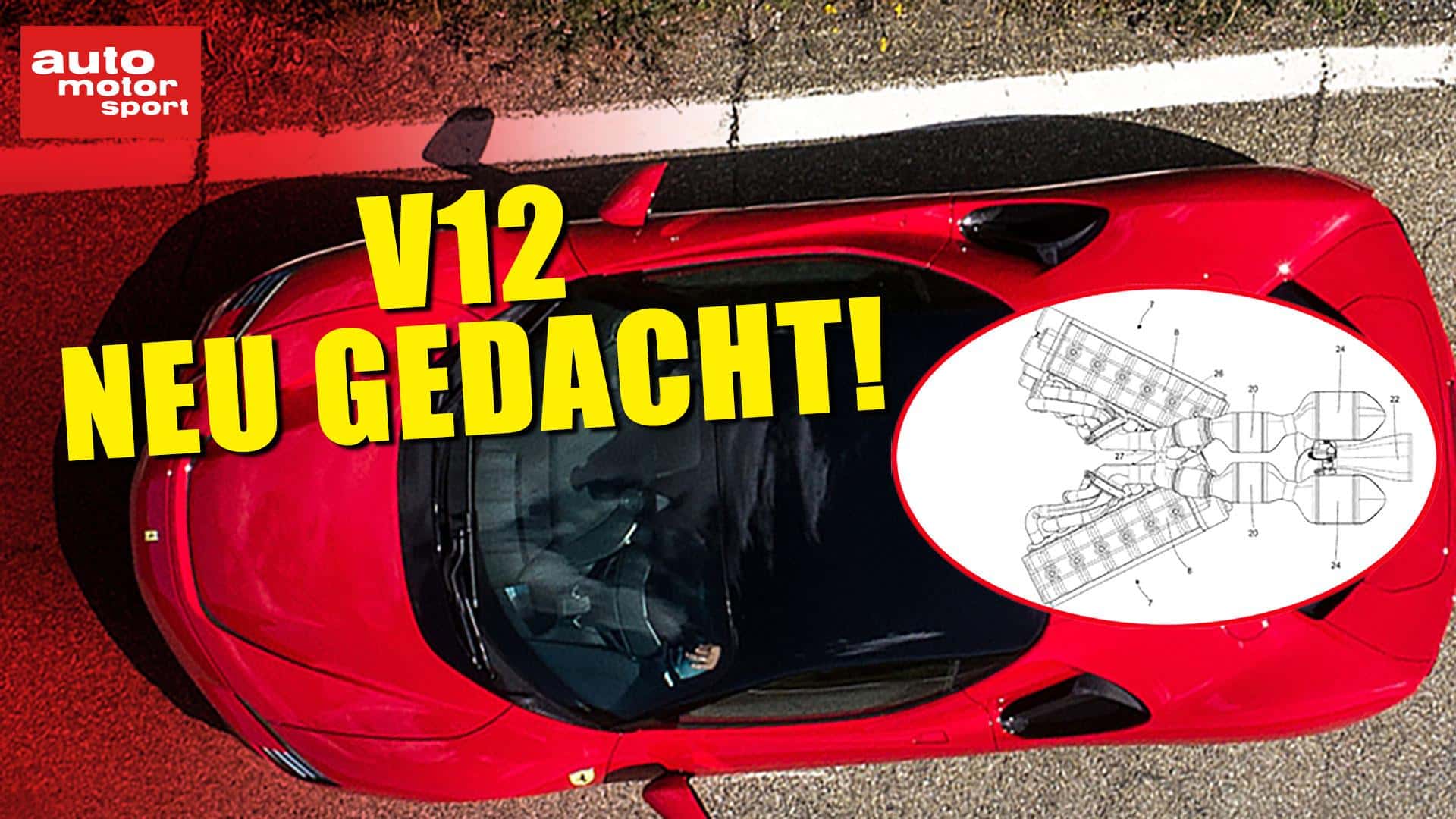 Zwölfzylindermotoren haben schon immer ihre ganz eigene Faszination. Klassische Konzepte ordnen die zwölf Zylinder in der Regel aufgeteilt in zwei Sechszylinderbänke und V-Form zueinander an. Der Bankwinkel liegt dabei meist zwischen 60 und 180 Grad. Der Sportwagenbauer Ferrari hat sich beim US-Patentamt USPTO unter der Nummer 2026/0077642 A1 am 19. März 2026 allerdings einen Zwölfzylindermotor schützen lassen, der die V-Konfiguration völlig anders auslegt.