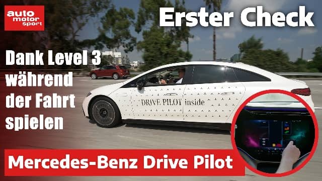 Der Testwagen mit Drive Pilot an Bord ist ein Mercedes EQS . Noch ehe das System aktiviert ist, nimmt dem EQS beim Rechtsabbiegen ein von der Gegenspur linksabbiegender Mercedes W123 die Vorfahrt – der (menschliche Fahrer, in dem Fall der Autor) kann zum Glück rechtzeitig stoppen. Zeit, dass der Drive Pilot übernimmt. Geht aber noch nicht – der Verkehr ist nicht dicht genug, noch sind mehr als 60 km/h möglich und somit mehr, als der Drive Pilot erlaubt. Das erste Mal in unserem Leben einen Stau herbeisehnend, testen wir dann eben erst mal den automatischen Spurwechsel der Distronic. Das ist zwar nur Fahren nach Level 2, aber die Technik ist bei Mercedes inzwischen weit entwickelt: Der Fahrer muss weder blinken noch in einen Außenspiegel schauen – das System entscheidet selbstständig, ob ein Spurwechsel angebracht ist. Und es funktioniert bei Geschwindigkeiten von bis zu 80 km/h. Was einem geübten Fahrer beim Selberfahren wie Routine erscheint, sorgt beim automatisierten Fahren für einen höheren Puls. Schließlich muss nur eine Hand sanft das Lenkrad berühren – als Zeichen dafür, dass der Fahrer noch die volle Aufmerksamkeit hat. Vor uns fährt ein langsames Fahrzeug – der EQS blinkt links, wechselt die Spur, überholt und wechselt zurück. Es ist ein komisches Gefühl, den Spurwechsel von der Technik erledigen zu lassen – auf dem Fahrersitz sitzend. Aber die Mitte der Spur hält der EQS dabei gut – die Ausgleichsbewegungen sind recht sanft, allerdings wären sie bei einem menschlichen Fahrer noch sanfter.
