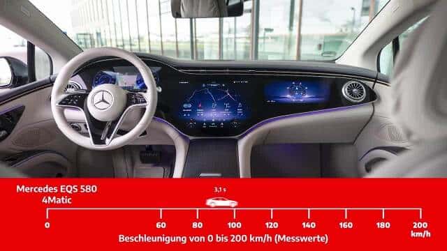 Mercedes gibt für den EQS 580 4Matic einen WLTP-Verbrauch von 18,0 kWh auf 100 Kilometern an. Von diesem Wert entfernt er sich im Alltag. Wir haben einen Durchschnittsverbrauch von 33,4 kWh ermittelt, was Stromkosten von 17,70 Euro auf 100 Kilometern verursacht. Auf der Eco-Runde verbrauchte der Mercedes 25,1 kWh, während er sich auf der Pendler-Strecke 34,8 kWh genehmigte. Wurde der Mercedes sportlich bewegt, stieg der Verbrauch auf 35,2 kWh. auto motor und sport hat im Monat November 2022 einen Gesamtdurchschnittspreis pro kWh Ladestrom für die Nutzung eines E-Autos in Deutschland errechnet: 52,96 (gerundet 53) Cent.