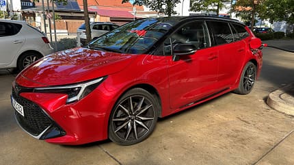 Vor einigen Wochen hat sich die Stimmung spürbar gebessert. Toyota entsandte einen knallroten Corolla Touring Sports in GR-Ausstattung in den Dauerlauf. Dank kräftig ausgeformten Front- und Heckschürzen plus schwarzem Dach und großen 18-Zoll-Rädern ist der 4,65 Meter lange Vollhybrid gewiss kein Mauerblümchen im Fuhrpark. Passend dazu steckt unter dem Blech nicht der 1,8 Liter große Saugbenziner, sondern die Zweiliter-Variante (152 PS), der im Verbund mit Planetenradgetriebe und 83-KW-E-Motor für eine hohe Systemleistung von 196 PS sorgt. 100 km/h schafft er laut Werksangaben in 7,5 Sekunden. Die Höchstgeschwindigkeit bei vernünftigen 180 km/h. Unsere eigenen Messungen auf Testgelände stehen noch aus.