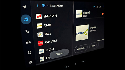 Wundern darf man sich auch im Japaner. Über die Sparsamkeits-Gamification (Eco-Score) mit ihren drei eigentümlich illustrierten Säulen, bei denen man auf Anhieb von keiner weiß, was sie einem sagen will. Oder über die eingeschränkte Senderliste des Radios und die eigenwillig bezeichneten Menüpunkte im Touchscreen, auf dem sich scheinbar gewollt Schaltflächen übereinander anordnen.
