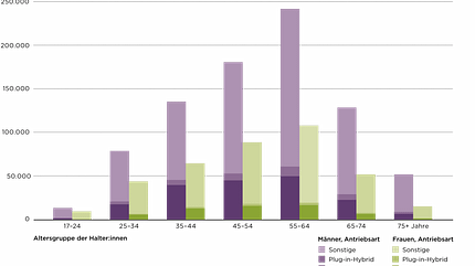 Private junge Neuwagen nach Antriebsart, Geschlecht und Alter.