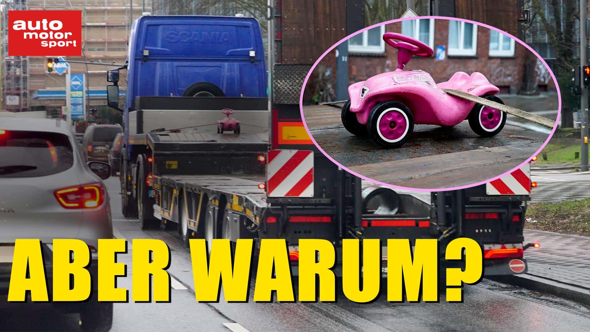 Nicht immer steckt ein ernster Hintergrund dahinter. Häufig ist das Bobby-Car schlicht ein humorvoller Beitrag zur Fahrt. Die ungewöhnliche Ladung soll anderen Verkehrsteilnehmern ein Lächeln ins Gesicht zaubern. Besonders auffällig wirkt es, wenn das Spielzeug wie eine echte Fracht mit Zurrgurten gesichert ist. Diese Kombination aus Schwerlasttechnik und Kinderauto verstärkt den komischen Effekt.
