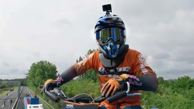 Man kennt ihn, den Werbeslogan des österreichischen Brauseherstellers Red Bull, der angeblich Flügel verleiht. Im jüngsten Motorrad-Stunt aus der Welt des Brause-Riesen scheint dieser Slogan wörtlich genommen worden zu sein. Luc Ackermann, 27 Jahre alt und geboren in Niederdorla, Thüringen, gilt als König des Freestyle Motocross. Sein Plan: mit seinem Motorrad von einem fahrenden Truck abspringen, einen Tsunami Backflip performen, über eine Höhenkontrolle fliegen und sicher auf einem zweiten fahrenden Truck landen.