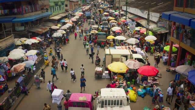 Auf seinem Weg zum Künstler schöpft Gyasi aus reichen Erfahrungen seiner Kindheit in Ghana, von musikalischen Tagen mit seinem Großvater bis zur Mitarbeit bei einem Porträtfotografen auf den Märkten von Accra. Seine Bilder erzählen visuelle Geschichten über die Atmosphäre und Lebendigkeit seiner Gemeinde, wobei Farben eine zentrale Rolle spielen.
