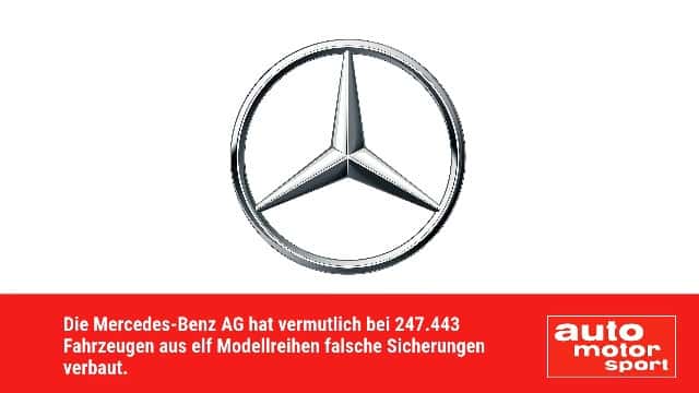 Die Mercedes-Benz AG hat vermutlich bei zahlreichen Fahrzeugen falsche Sicherungen verbaut. Insgesamt sind weltweit 247.443 Fahrzeuge aus elf Modellreihen betroffen: AMG GT (BR 192), C-Klasse (BR 206), E-Klasse (BR 214), S-Klasse (BR 223), SL (BR 232), CLE (BR 236), GLC (BR 254), EQE SUV (BR 294), EQE (BR 295), EQS SUV (BR 296) und EQS (BR 297).