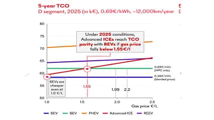 Im Vergleich zu Plug-in-Hybriden (PHEVs) und Range-Extender-EVs (REEVs) zeigten batterieelektrische Fahrzeuge klare Vorteile. Denn gerade Plug-in-Hybride fahren im Alltag kaum elektrisch – private Nutzer bewegen sie nur etwa zur Hälfte, Dienstwagenfahrer sogar nur zu zehn bis 15 Prozent im E-Modus. Auch E-Fahrzeuge mit Range Extender, die vor allem in China an Bedeutung gewinnen, nutzen ihren Verbrenneranteil zu einem hohen Anteil und bringen für Europa weder einen klaren Klimavorteil noch industrielle Wertschöpfung. Ein durchschnittliches BEV verursacht im Betrieb jährlich 640 bis 1.600 Euro weniger Kosten als ein PHEV und stößt im Lebenszyklus nur etwa die Hälfte der CO₂-Emissionen aus.