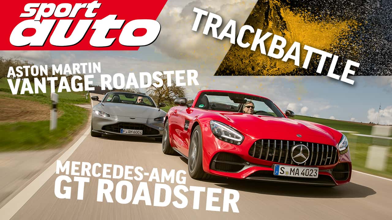 Britische Noblesse gegen deutsche Ingenieurskunst: Im Trackbattle treffen zwei hochkarätige Roadster aufeinander. Der Aston Martin Vantage mit seinem AMG-V8-Biturbo leistet 510 PS und 685 Nm Drehmoment. Sein Gegner aus Affalterbach, der Mercedes-AMG GT Roadster, schöpft aus dem gleichen Grundmotor 476 PS und 630 Nm. Beide Sportwagen setzen auf Hinterradantrieb und Doppelkupplungsgetriebe.