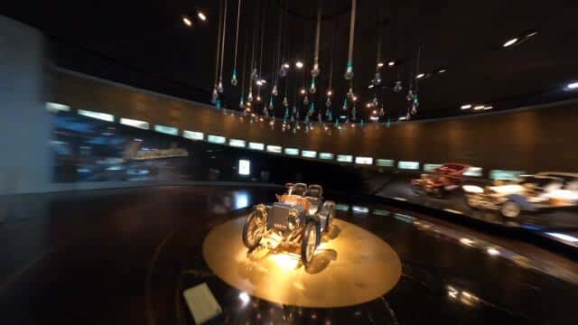 Die rasante Tour führt durch alle Ausstellungsebenen des architektonisch einzigartigen Museums. Von den Anfängen des Automobils mit dem Benz Patent-Motorwagen über silberne Rennlegenden bis zu modernen AMG-Boliden - die Drohne fängt 130 Jahre Automobilgeschichte in einer dynamischen Choreografie ein. Besonders beeindruckend: Die präzisen Flugmanöver zwischen eng steh