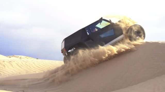 Das kantige Grund-Design des Brawley erinnert ein wenig an den neuen Ford Bronco. Wobei der Vanderhall quasi keine Überhänge aufweist und auf große Räder setzt – gut für die Geländetauglichkeit. Die Räder stehen trotz angedeuteter Radlaufverbreiterungen mehr oder weniger komplett im Freien. Das Dach des Zweitürers, aus dem ein Teil herausnehmbar ist, ist schwarz gehalten, der Karosserie-Grundkörper farbig abgesetzt. Die Türen tragen große Durchbrüche. Die mit LED-Scheinwerfern bestückte Front scheint sich an den Jeep Wrangler anzulehnen.