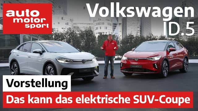 Der VW ID.5 zeigt sich als aerodynamisch optimierte Coupé-Version des ID.4. Mit einer Länge von 4,58 Metern und einer um drei Zentimeter reduzierten Höhe von 1,61 Metern erreicht er einen verbesserten cw-Wert von 0,26. Das Top-Modell GTX leistet 299 PS und verspricht dank besserer Aerodynamik eine Reichweite von bis zu 490 Kilometern. Alle Varianten setzen auf den großen 77-kWh-Akku, die Einstiegsversion startet bei 174 PS. Während der ID.5 Pro in 10,4 Sekunden auf 100 km/h sprintet, schafft es die Pro Performance Version mit 204 PS in 8,4 Sekunden. Die Höchstgeschwindigkeit ist bei allen Modellen auf 160 km/h begrenzt. Im Video zeigen wir die wichtigsten Details des elektrischen SUV-Coupés und erklären die Unterschiede zum ID.4.