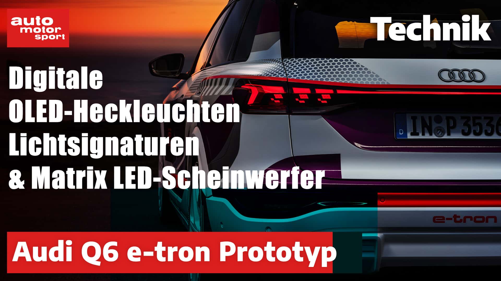 Die digitalen Lichtsignaturen, Matrixscheinwerfer und OLED-Heckleuchten des Audi Q6 e-tron Prototyp im Video