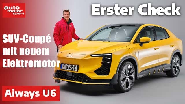 Der Aiways U6 will als elektrisches SUV-Coupé den etablierten Herstellern Konkurrenz machen. Im exklusiven ersten Test zeigt der Chinese seine Qualitäten: Der selbst entwickelte E-Motor leistet 218 PS, beschleunigt in 6,9 Sekunden auf 100 km/h und soll 400 Kilometer Reichweite ermöglichen. Der 63-kWh-Akku lädt mit bis zu 90 kW. Besonders überzeugend: die hochwertige Verarbeitung und das moderne Cockpit mit 14,6-Zoll-Touchscreen. Elf Assistenzsysteme mit 22 Radar- und Kamerasensoren sorgen für Sicherheit. Das Fahrwerk bietet einen guten Kompromiss aus Komfort und Dynamik. Fazit: Der 4,80 Meter lange U6 präsentiert sich als durchdachtes E-Auto mit gutem Preis-Leistungs-Verhältnis.