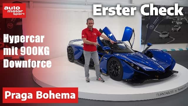 Der Praga Bohema zeigt sich erstmals im Detail: Der tschechische Supersportwagen kombiniert einen getunten Nissan GT-R-V6-Biturbo mit radikalem Carbon-Leichtbau. Das Ergebnis: 700 PS bei nur 982 kg Trockengewicht. Die extreme Aerodynamik generiert bei 250 km/h satte 900 kg Abtrieb. Im Video zeigen wir die spektakulären Details wie das Carbon-Monocoque, die nach oben schwenkenden Türen und das Renncockpit mit abnehmbarem Lenkrad. Trotz Rennwagen-Genen bietet der Zweisitzer auch Alltagskomfort mit Klimaanlage und Gepäckfächern. Die Produktion der auf 89 Exemplare limitierten Serie startet Anfang 2024. Preis: 1,36 Millionen Euro plus Steuern.