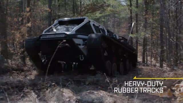 Das abgefahrene Tempo, mit dem sich der Ripsaw offroad bewegen lässt, geht dabei auf das Konto des Fahrwerks. Die Führungsräder des Laufwerks sind an langen Schwingen befestigt und werden von Federbeinen aus dem Rallyesport abgestützt. Weite Sprünge, mit 80 über eine Schlaglochpiste oder auch einfach mal volley über einen Hügel schanzen – alles kein Problem für den Ripsaw und die Fahrgäste. Die Bedienung ist dabei recht simpel: Gelenkt wird über eine Art Steuerhorn ähnlich dem in einem Flugzeug, für Gas und Bremse gibt es ganz normale Pedale, da muss sich niemand umgewöhnen.