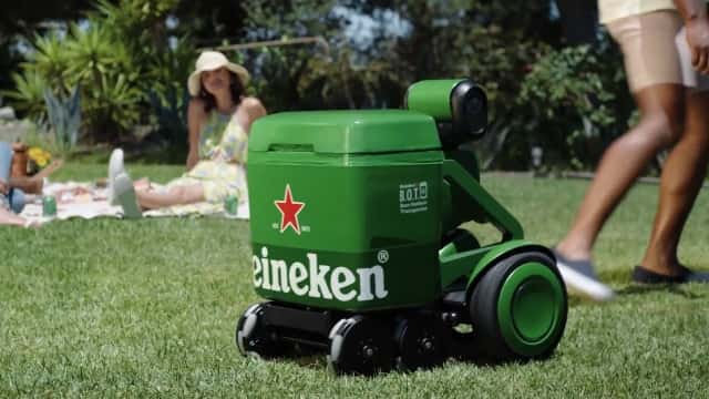 Der Heineken B.O.T. (Beer Outdoor Transporter) revolutioniert das Biertrinken im Freien: Als autonomer Roboter-Butler folgt er seinem Besitzer und bringt selbstständig gekühltes Bier. Das dreiachsige Gefährt nutzt modernste Technik wie Lidar und KI-Algorithmen zur Navigation.