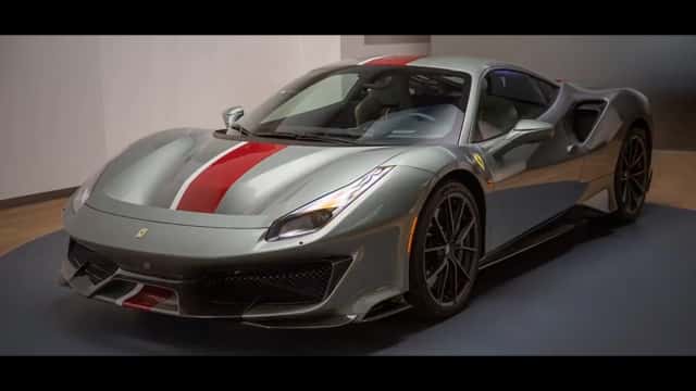 Der Ferrari 488 Pista zeigt sich in einer ungewöhnlichen Werks-Individualisierung. Statt des traditionellen Rosso Corsa trägt der 720 PS starke V8-Supersportler die Sonderlackierung Verde Nathalie mit rot-weißem Mittelstreifen. Im Video präsentiert Ferrari die Details des Tailor Made Programms.