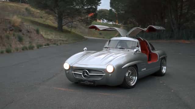 Unter der neu gestalteten Motorhaube arbeitet der original 3,2-Liter-V6-Kompressormotor mit 354 PS. Die charakteristischen Flügeltüren wurden aufwendig in die SLK-Karosserie integriert. Besonders beeindruckend: Die Verschmelzung der klassischen 300 SL-Designelemente mit der kompakteren SLK-Plattform.