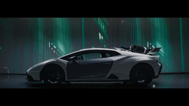 Zum 60-jährigen Firmenjubiläum verbindet Lamborghini Hightech-Kunst mit V10-Power. Der japanische Künstler Ikeuchi verwandelt einen Huracan STO in den Time Chaser_111100 - ein fahrendes Kunstwerk im Cyberpunk-Stil.
