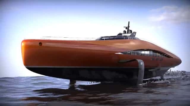 Lazzarini präsentiert mit der Plectrum eine revolutionäre Superyacht, die dank Wasserstoff-Brennstoffzelle und 15.000 PS starken Elektromotoren bis zu 139 km/h schnell sein soll. Die 74 Meter lange Carbon-Yacht hebt sich bei höheren Geschwindigkeiten durch ausfahrbare Tragflächen aus dem Wasser und reduziert so den Wasserwiderstand massiv.