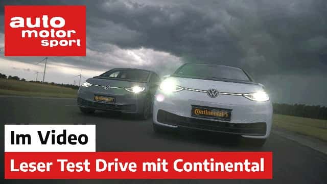 Wie wirken sich unterschiedliche Reifenkonzepte auf Reichweite und Sicherheit aus? In unserem Continental Leser Test Drive gehen wir dieser Frage nach. Am VW ID.3 vergleichen wir den rollwiderstandsoptimierten EcoContact mit dem auf Sicherheit ausgelegten PremiumContact. Das Ergebnis überrascht: Mit dem EcoContact kommt der ID.3 pro kWh etwa 400 Meter weiter - ein Plus von 6%. Doch der Preis für die höhere Effizienz wird beim Bremsen deutlich: Auf nasser Fahrbahn benötigt der Leichtlaufreifen aus 80 km/h 1,6 Meter mehr Bremsweg. Unsere Leser-Tester diskutieren, welcher Kompromiss zwischen Reichweite und Sicherheit der richtige ist. Zusätzlich untersuchen sie die Auswirkungen von Dachboxen auf den Verbrauch und testen, wie sich moderne Reifen auf Oldtimer auswirken.