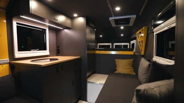 Highlights sind die bis zu 1,5 kW starke Solaranlage, Lithium-Batterien mit 2.000 Ah und ein 10 kW Wechselrichter für absolute Autarkie. Der Innenraum bietet eine Rundsitzgruppe mit Schlaffunktion, voll ausgestattete Küche und ein separates Bad mit WC und Dusche. Besonders praktisch: Die Dusche dient gleichzeitig als Schmutzschleuse beim Einstieg.
