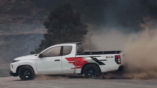 Die Ralliart-Versionen beschränken sich auf Designelemente wie schwarze Felgen, Türgriffe und Frontgrill plus rote Akzente und Ralliart-Seitenstreifen. Selbst die Farbauswahl ist limitiert: Nur Schwarz oder Weiß mit schwarzem Dach stehen zur Wahl. Der aufgehübschte Pajero Sport startet bei umgerechnet 35.730 Euro, der Triton bei 17.460 Euro.