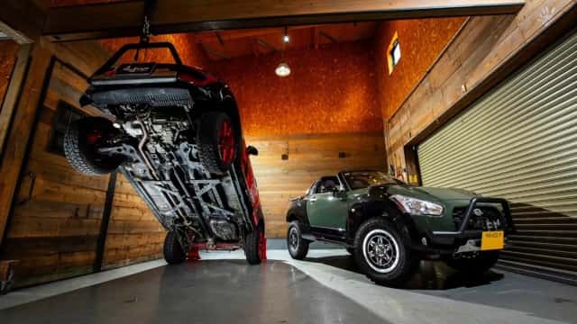 Der japanische Tuner Mo.FAC zeigt, wie man aus einem niedlichen Kei-Car einen echten Hingucker macht. Der nur 3,4 Meter kurze Daihatsu Copen wird dabei mit einem radikalen Höherlegungskit um satte 20 Zentimeter nach oben geschraubt. Das komplette Umbaupaket enthält neben dem Spezialfahrwerk auch verlängerte Bremsschläuche, eine angepasste Lenkwelle und modifizierte Motoraufhängungen. Für die 195/80 R15 Geländereifen wurden die Radhäuser deutlich vergrößert. Optional gibt es sogar einen Allradumbau mit zusätzlicher Starrachse. Das Basiskit ist ab 1.900 Euro erhältlich, mit Einbau werden rund 4.000 Euro fällig. Zusätzlich verbaut Mo.FAC Recaro-Sitze, eine Sportauspuffanlage sowie Zusatzscheinwerfer. Der gezeigte Showcar-Umbau wurde komplett mit Unterfahrschutz, Dachträger und martialischen A