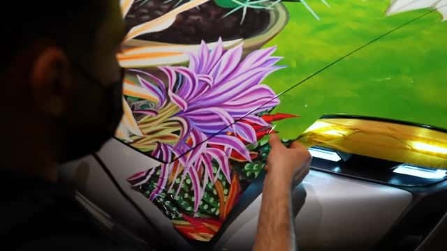 Künstler lieben Porsche als Leinwand - das zeigt die Geschichte der Artcars seit 1968. Im Video stellen wir das neueste Kunstwerk vor: Den von Richard Phillips gestalteten Taycan. Der amerikanische Künstler, der bereits 2019 einen siegreichen Le Mans 911 RSR verzierte, ließ sich vom Gemälde 'Queen of the Night' inspirieren. Live im Züricher Pop-up-Restaurant Leuehof entstanden, zeigt der Elektro-Porsche eine ausdrucksstarke Interpretation mit floralen Mustern. Der Erlös der späteren Auktion kam Künstlern zugute, die unter der Pandemie litten. Phillips reiht sich damit in eine illustre Liste von Artcar-Schöpfern ein - von Janis Joplins psychedelischem 356 C bis zum gesellschaftskritischen 911 Fat Car NFT von Erwin Wurm.