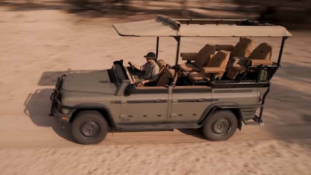 Der erste Safari-Grenadier zeigt, was möglich ist: Alles oberhalb der Windschutzscheibe wurde entfernt, eine klappbare Frontscheibe installiert. Statt karger Sitzbänke verwöhnen vier luxuriöse Einzelsitze die Safari-Gäste. Die komplexe BMW-Antriebstechnik bleibt unangetastet.