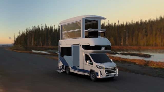 Der SAIC Maxus V90 Villa Edition definiert Luxus-Camping neu: Das chinesische Wohnmobil verwandelt sich per Knopfdruck in ein zweistöckiges Feriendomizil. Das Highlight: Ein Personenaufzug bringt die Camper ins ausfahrbare Obergeschoss.