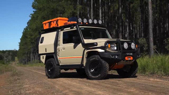 Der australische Offroad-Spezialist Maxtrax präsentiert mit dem Toyzuki 39.5 einen spektakulären Suzuki Jimny-Umbau. Das Showcar, entstanden in Zusammenarbeit mit 30 führenden Zubehörherstellern, wurde zum Pick-up umgebaut und maximal aufgerüstet. Highlight ist die aufwändige Karosserie-Modifikation: Hinter den Vordersitzen wurde der Jimny gekappt und mit einer maßgeschneiderten Ladefläche versehen. Eine höhenverstellbare Luftfederung von Airbag Man mit Jmacx-Dämpfern sorgt für Geländegängigkeit, 235/75-R15 Offroad-Reifen auf ROH-Beadlock-Felgen für Traktion. Die Vollausstattung umfasst Unterfahrschutz, Schutzrohre, Zusatzscheinwerfer und einen Dachträger. Der umgerechnet 72.000 Euro teure Umbau wurde in einer Online-Aktion verlost - inklusive Jahresvorrat Bier für den glücklichen Gewinner