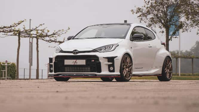 Neben der Leistungssteigerung erhält der GR Yaris ein KW-Clubsport-Gewindefahrwerk für maximale Performance auf Straße und Rennstrecke. Optisch beeindrucken die 19-Zoll-Barracuda-Dragoon-Felgen in 'Highgloss Bronze' (399 Euro pro Stück) mit 235/35er-Bereifung.